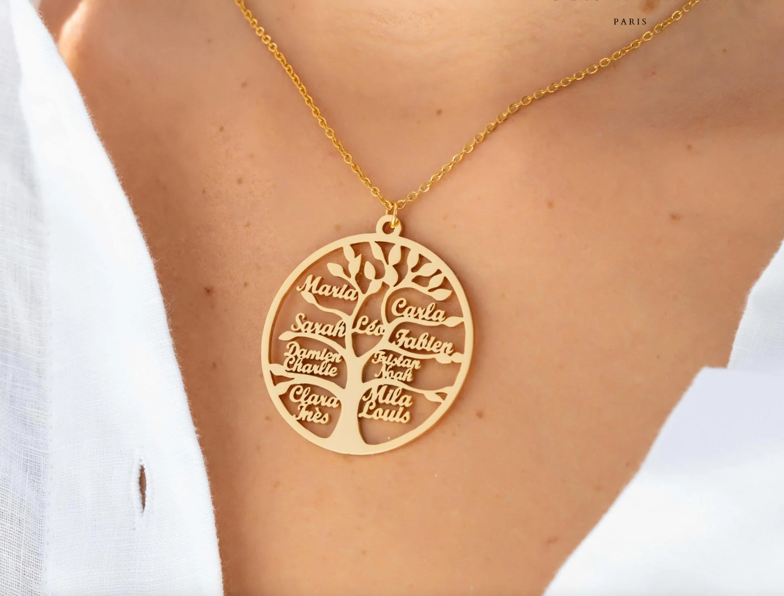 Chaque collier porte les prénoms de vos enfants pour symboliser un lien unique.